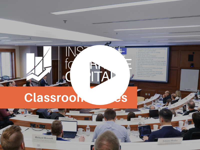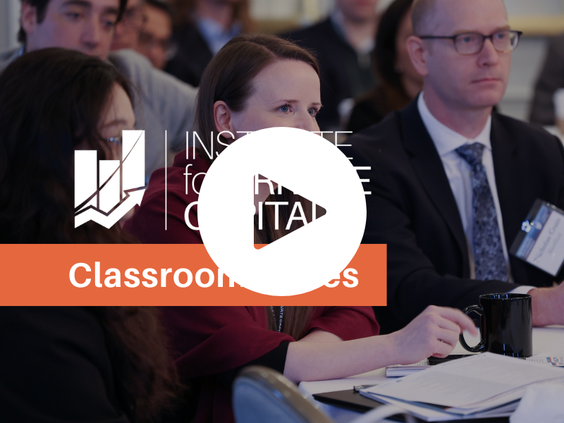 In our Private Markets Classroom Series, IPC faculty, fellows, and other experts will provide an educational dive into a broad range of important private capital topics. Register below and join live to learn and ask questions in real time. You will also find recordings of past sessions for our members to revisit.